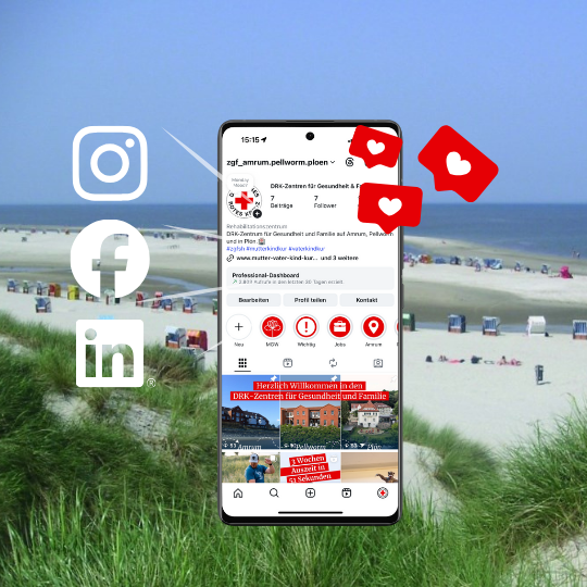 Die DRK-Zentren auf Amrum, Pellworm und Plön gehen neue Wege in der Kommunikation: Ab sofort sind wir auf den Social-Media-Plattformen Facebook, Instagram und LinkedIn aktiv – gemeinsam auf einem Kanal.